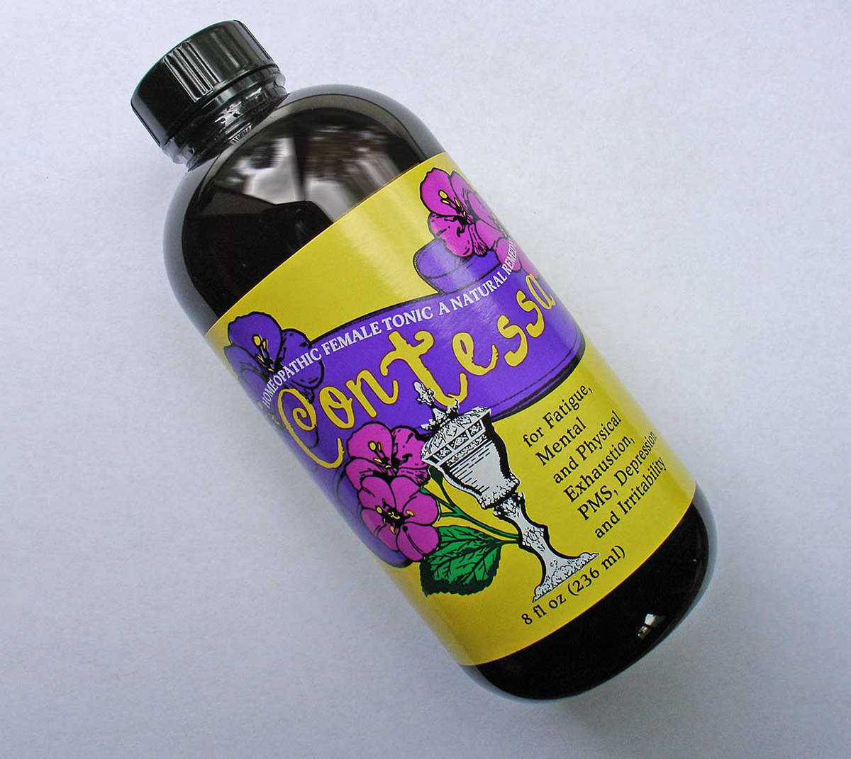 Tonic bottle with label.